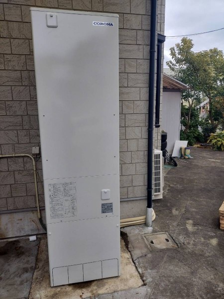 うるま市 コロナ自然冷媒CO2家庭用ヒートポンプ給湯機 貯湯ユニットCTU-S46AY4K 給湯器交換工事