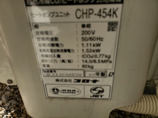 浦添市城間 コロナ自然冷媒CO2家庭用ヒートポンプ給湯機ヒートポンプユニットCHP-454K エコキュート交換工事