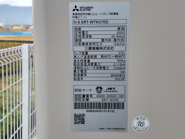 宜野湾市真志喜 三菱電機家庭用自然冷媒CO2ヒートポンプ給湯機貯湯ユニットSRT-WTK376D エコキュート交換工事