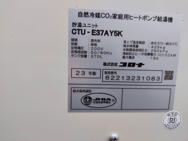 豊見城市宜保 コロナ自然冷媒CO2家庭用ートポンプ給湯機貯湯ユニットCTU-E37AY5K エコキュート交換工事