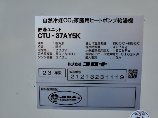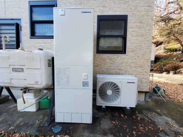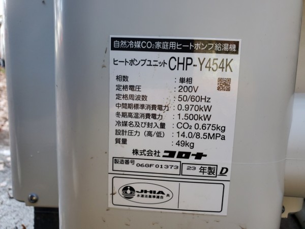 糸満市潮平 コロナ自然冷媒CO2家庭用ヒートポンプ給湯機ヒートポンプユニットCHP-Y454K、貯湯ユニットCTU-37AY5K エコキュート交換工事