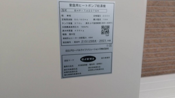 東村日立家庭用ヒートポンプ給湯機BHP-TAD37SK給湯器交換工事
