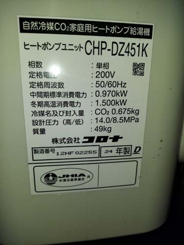 国頭郡宜野座村惣慶 コロナ自然冷媒CO2家庭用ヒートポンプ給湯機 ヒートポンプユニットCHP-DZ451K エコキュート交換工事