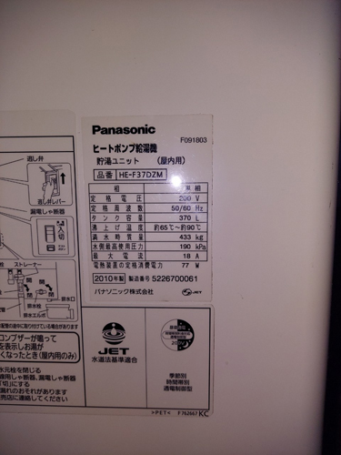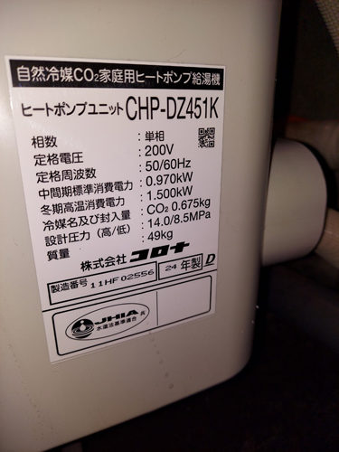 豊見城市宜保 コロナ自然冷媒CO2家庭用ヒートポンプ給湯機 ヒートポンプユニットCHP-DZ451K エコキュート交換工事