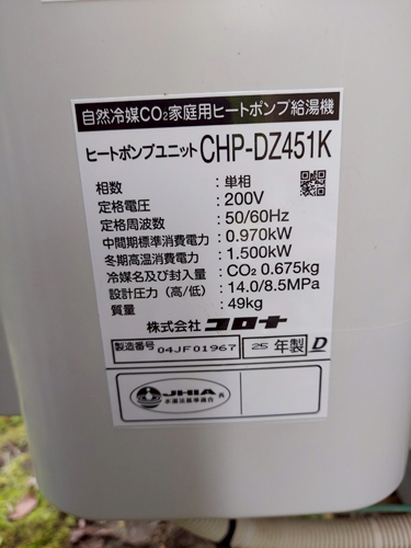 那覇市牧志 コロナ自然冷媒CO2家庭用ヒートポンプ給湯機 ヒートポンプユニットCHP-DZ451K エコキュート交換工事