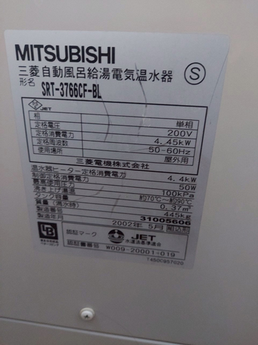 名護市大東 三菱電機自動風呂給湯電気温水器SRT-3766CF-BL→コロナ自然冷媒CO2家庭用ヒートポンプ給湯機貯湯ユニットCTU-37AZ1K エコキュート交換工事