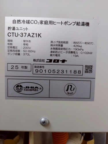 名護市大東 コロナ自然冷媒CO2家庭用ヒートポンプ給湯機貯湯ユニットCTU-37AZ1K エコキュート交換工事|沖縄県でエコキュート交換工事・取り付け・補助金申請なら|沖縄エコキュート交換工事センター