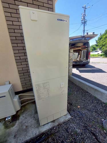 石垣市大川 コロナ自然冷媒CO2家庭用ヒートポンプ給湯機 ヒートポンプユニットCHP-DZ451K エコキュート交換工事