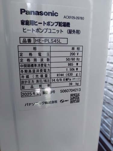 宮古島市平良 パナソニック家庭用ヒートポンプ給湯機 ヒートポンプユニットHE-PLS45L エコキュート交換工事|沖縄県でエコキュート交換工事・取り付け・補助金申請なら|沖縄エコキュート交換工事センター