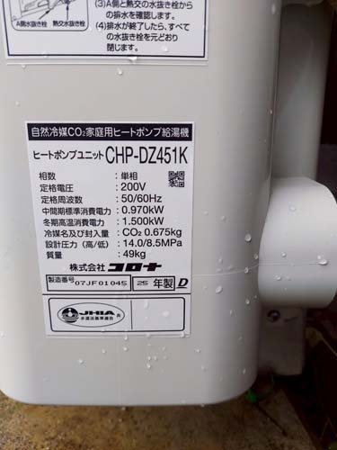 名護市城 コロナ自然冷媒CO2家庭用ヒートポンプ給湯機 ヒートポンプユニットCHP-DZ451K エコキュート交換工事