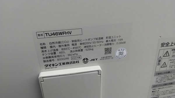与那国町 ダイキン自然冷媒CO2家庭用ヒートポンプ給湯機貯湯ユニットTU46WFHV給湯器交換工事